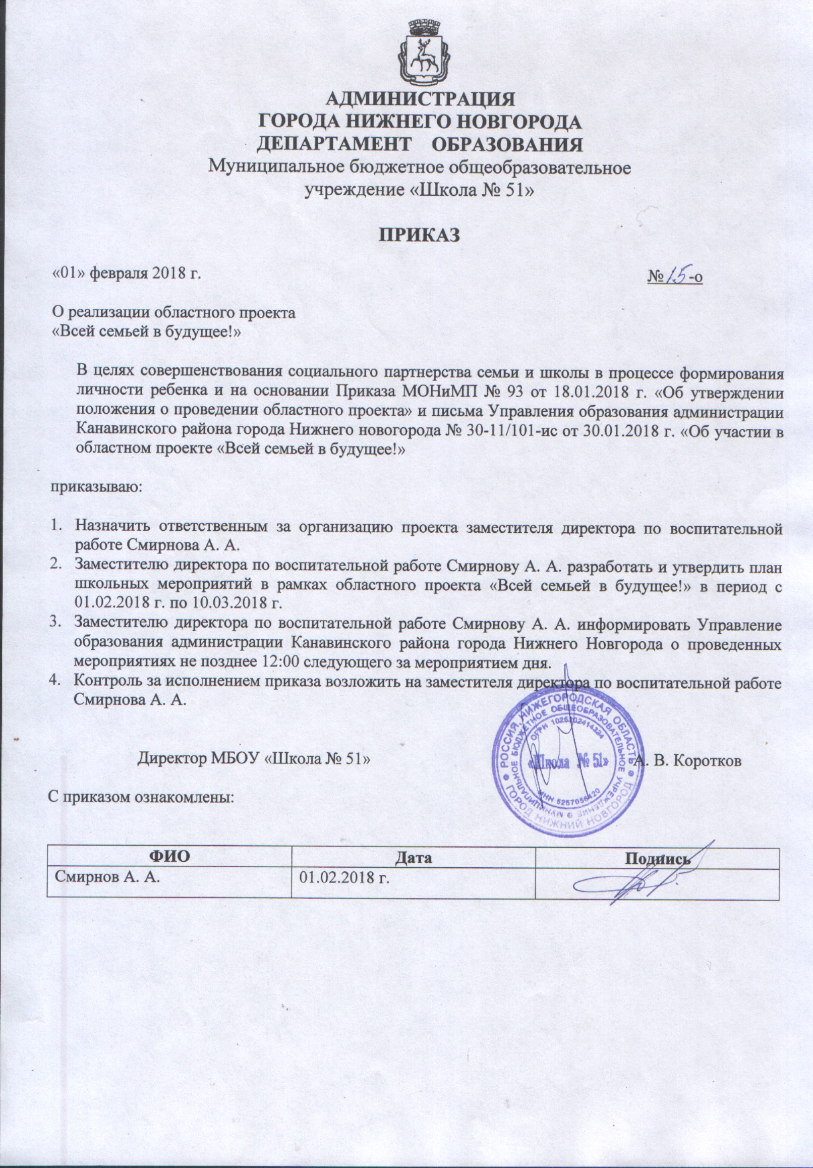 - Приказ МБОУ "Школа № 51" №15-о о реализации проекта